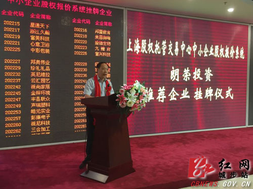红网城步站6月21日讯(通讯员 刘泉)6月17日,城步苗族自治县天源电力开发有限公司在上海股权托管交易中心挂牌上市,股权代码为210206,名称为“天源电力”。县人民政府副县长罗小林出席挂牌仪式并致辞。县政府办(金融办)、财政、安监环保、商务经信、工业集中区、新能源开发指挥部、城建投等相关单位人员参加。