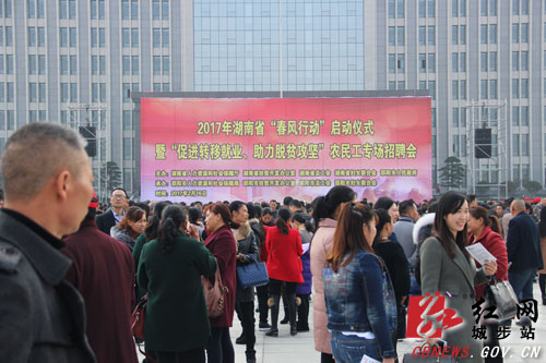 红网城步分站2月17日讯(分站记者何曙光)2月16日,2017年湖南省“春风行动”启动仪式暨促进转移就业、助力脱贫攻坚农民工专场招聘会在邵阳市举行,这是邵阳市入春以来入场招聘企业和提供就业岗位最多的一场大型招聘服务活动。城步劳动就业局带队组织了13个乡镇场的200余名扶贫建档立卡户求职者和10余家招聘企业提供的100余个工作岗位参加了现场招聘会。有200名农民工求职者在现场与用人单位签订了劳务输出意向。