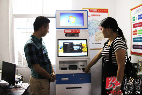 随行人员在平南寨村电商服务站指导操作自助终端机