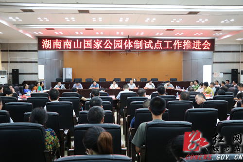 湖南南山国家公园管理局党委书记、湖南南山国家公园筹委会副主任、县委书记罗建南出席会议并讲话。他指出,自今年3月22日成立湖南南山国家公园筹备委员会以来,湖南南山国家公园体制试点工作取得了显著成效,顺利通过了在5月份由国家住建部牵头的工作督查,并起草上报了《湖南南山国家公园体制试点综合报告》,为国家公园建设提供了经验。9月18日召开的省政府常务会议对我们的前段工作给予充分肯定,认为湖南南山国家公园体制试点工作总体规划编制基本完成,重点工作进展迅速,机制创新成效明显,生态管控主动有力,项目建设稳步实施。