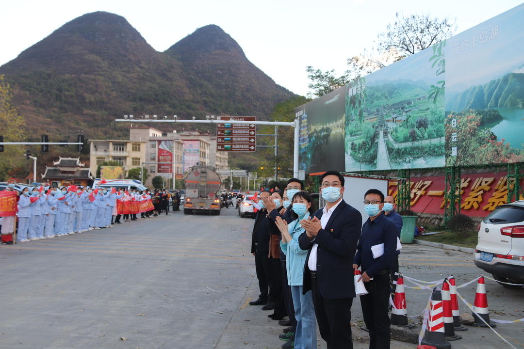 城步融媒体中心11月28日讯(记者 饶兴建 阳远志)11月27日,城步28名支援邵阳方舱医院的医务人员不负重托、不辱使命,圆满完成支援救治任务后平安凯旋。县委书记余勋伟,县委副书记、县长王慧敏,县领导樊江峰、马忠华、陈芳迎接。