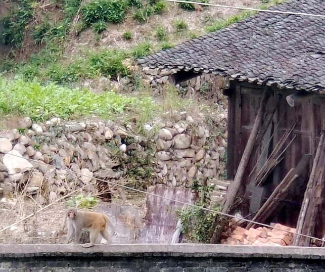 画面中,这只藏酋猴灵活地在村庄围墙上跳跃而过,动作灵动。藏酋猴是中国特有物种,分布于中部地区,东至浙江、福建,西到四川,北达秦岭南部,南界为南岭。藏酋猴是中国猕猴属中最大的一种。体长61-72厘米,尾长7厘米左右,体重12-18千克。栖息于山地阔叶林区有岩石的生境中,集群生活,由10几只或20-30只组成,每群有2-3只成年雄猴为首领,遇敌时首领在队尾护卫。喜在地面活动,在崖壁缝隙、陡崖或大树上过夜。以多种植物的叶、芽、果、枝及竹笋为食,亦食鸟及鸟卵、昆虫等动物性食物。