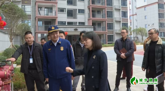 图为县委副书记、县长王慧敏在儒林世家小区查看消防设施