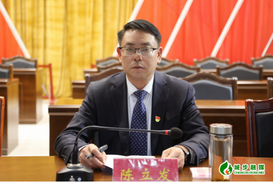 图为县委副书记、县委统战部部长陈立发主持会议