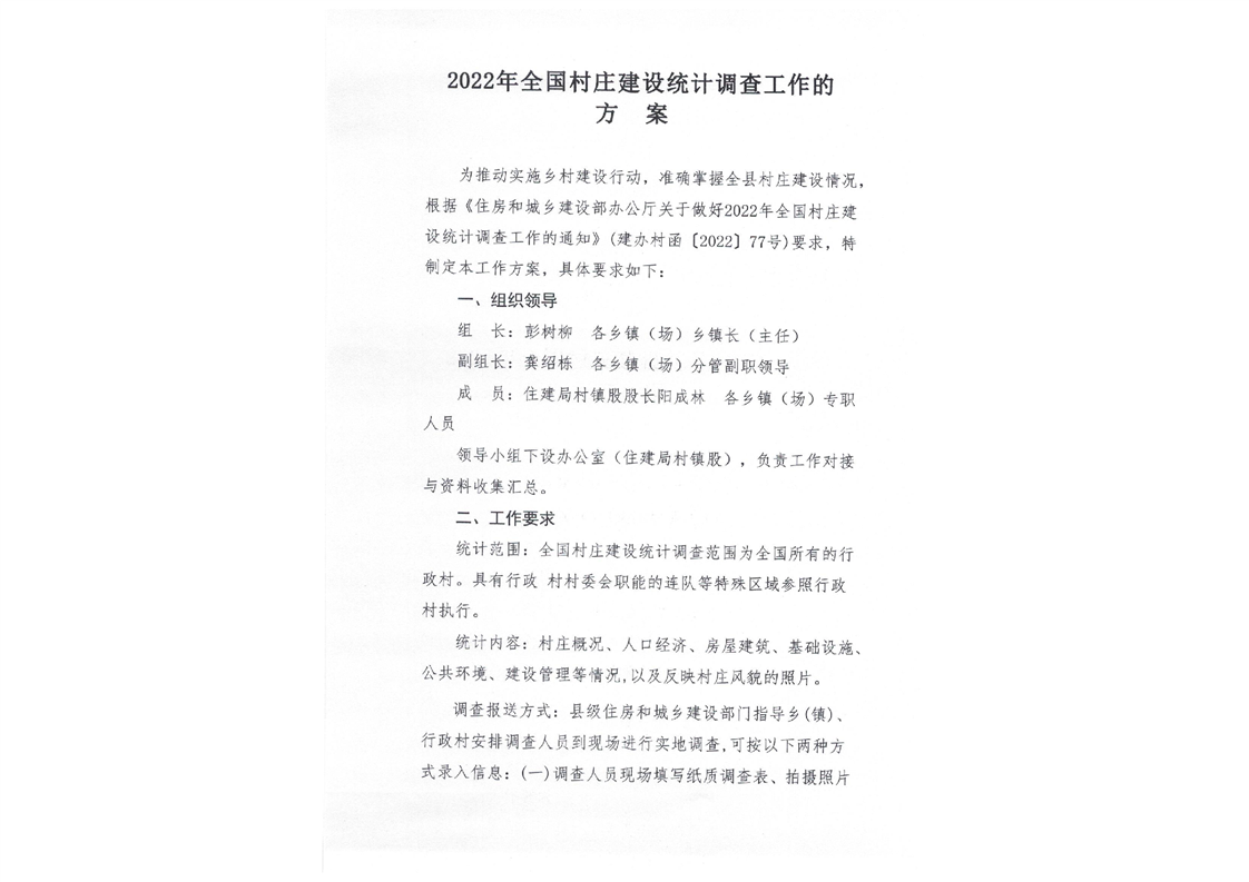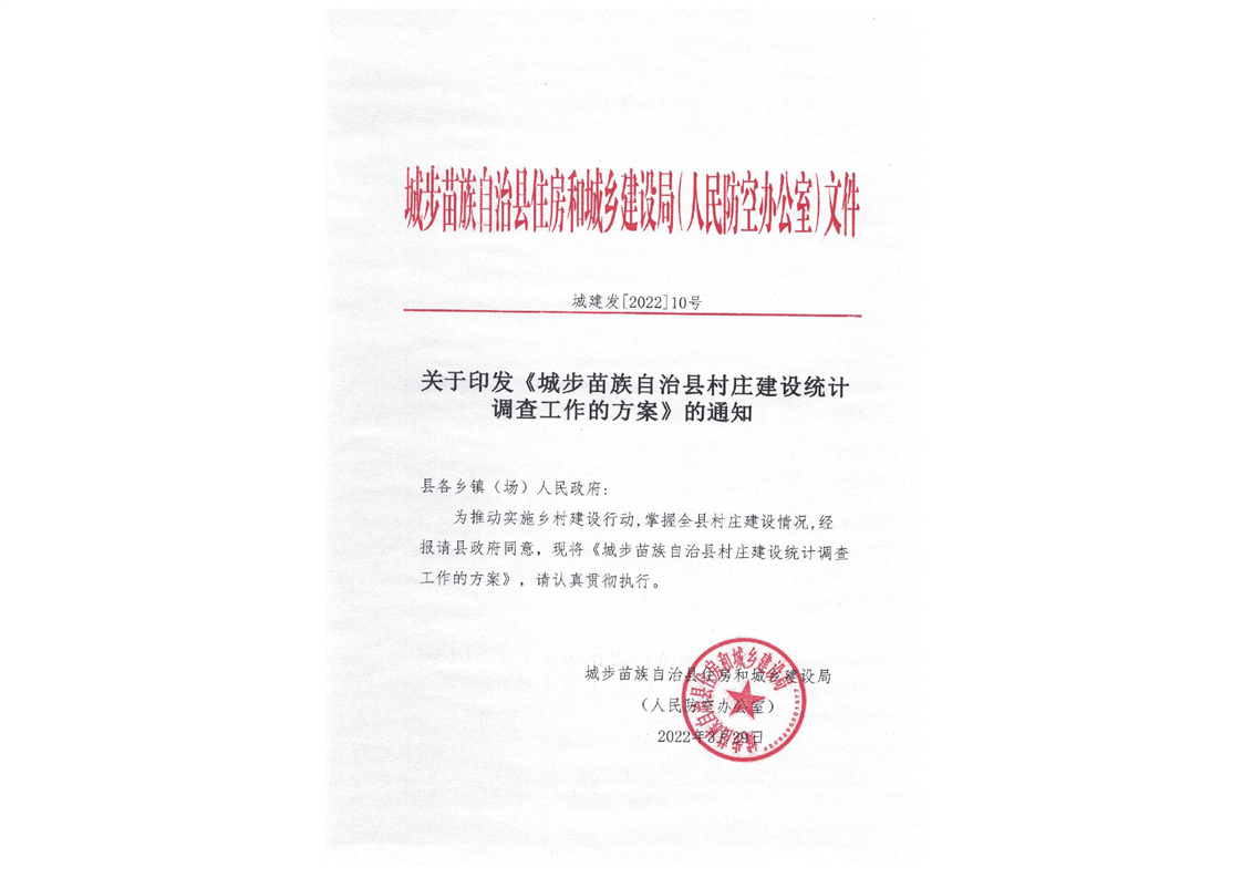关于印发《城步苗族自治县村庄建设统计调查工作的方案》的通知